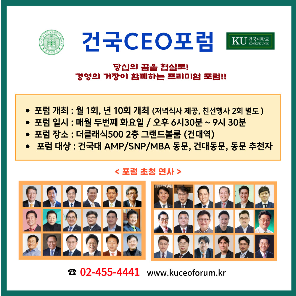 - 포럼 대상 : 건국대 동문 전체, 기업 CEO 및 임직원, 미래와 혁신에 관심이 있는 일반인 등