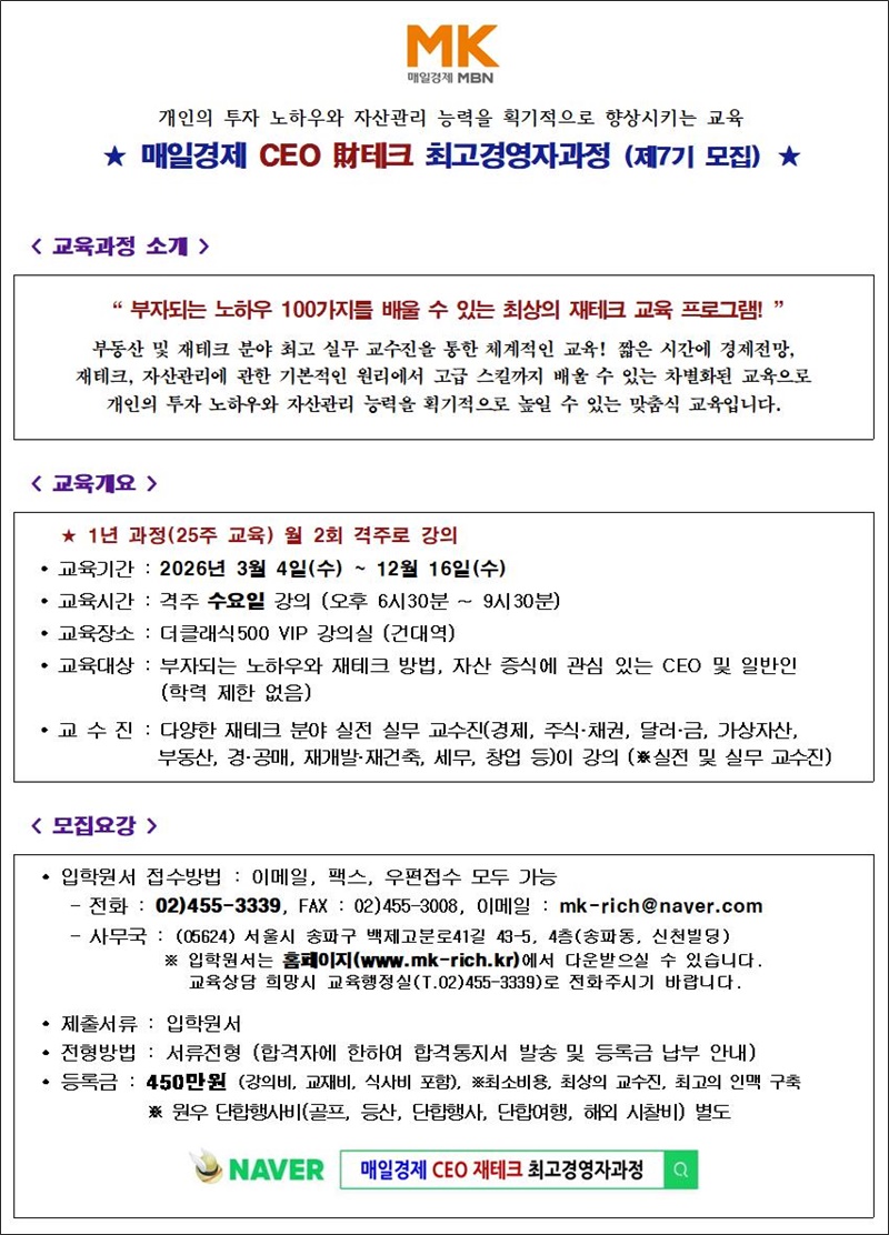 ★ 매일경제 CEO 재테크 최고경영자과정 제7기 모집★